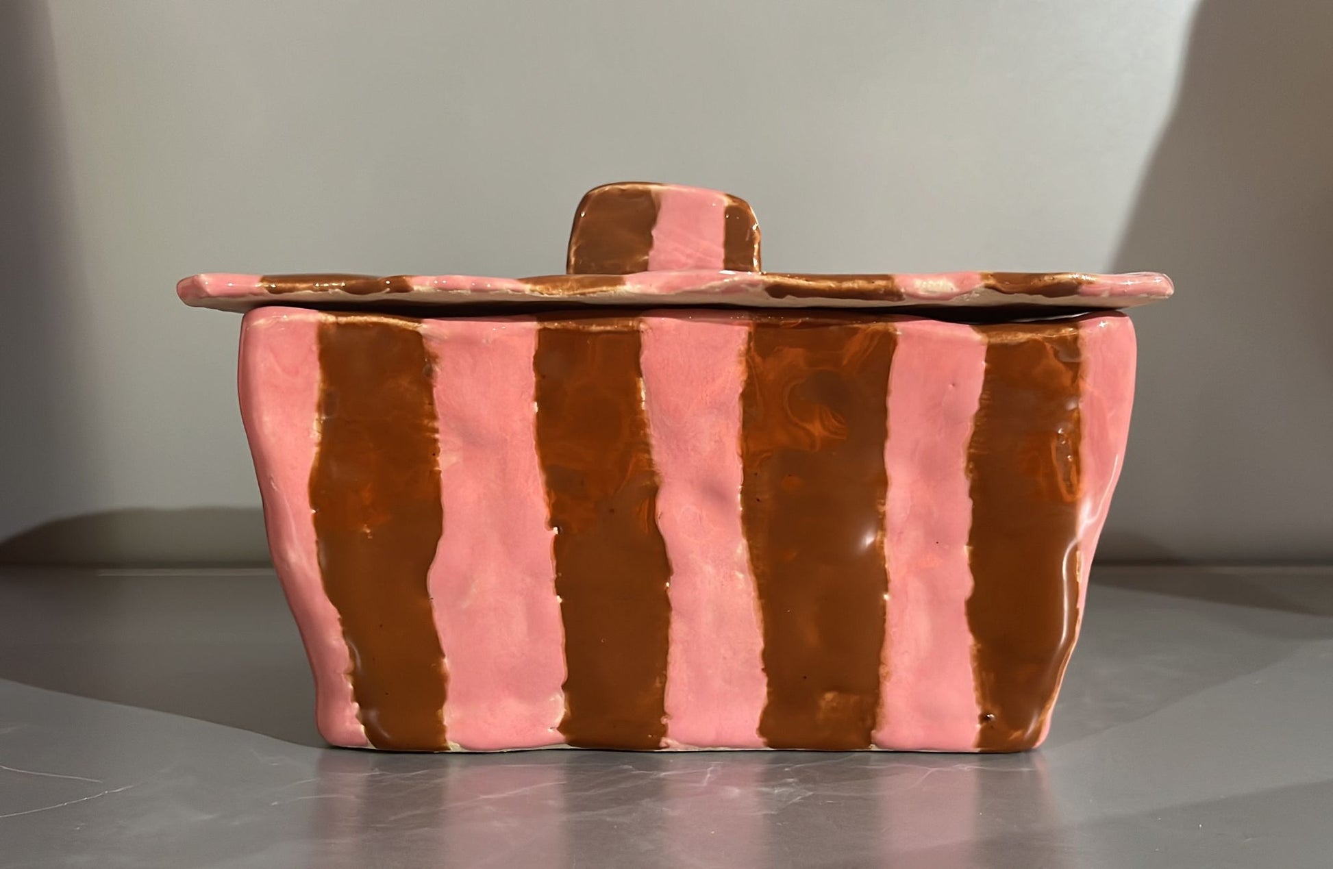 Hand-built glazed ceramic vessel that holds everyday objects.