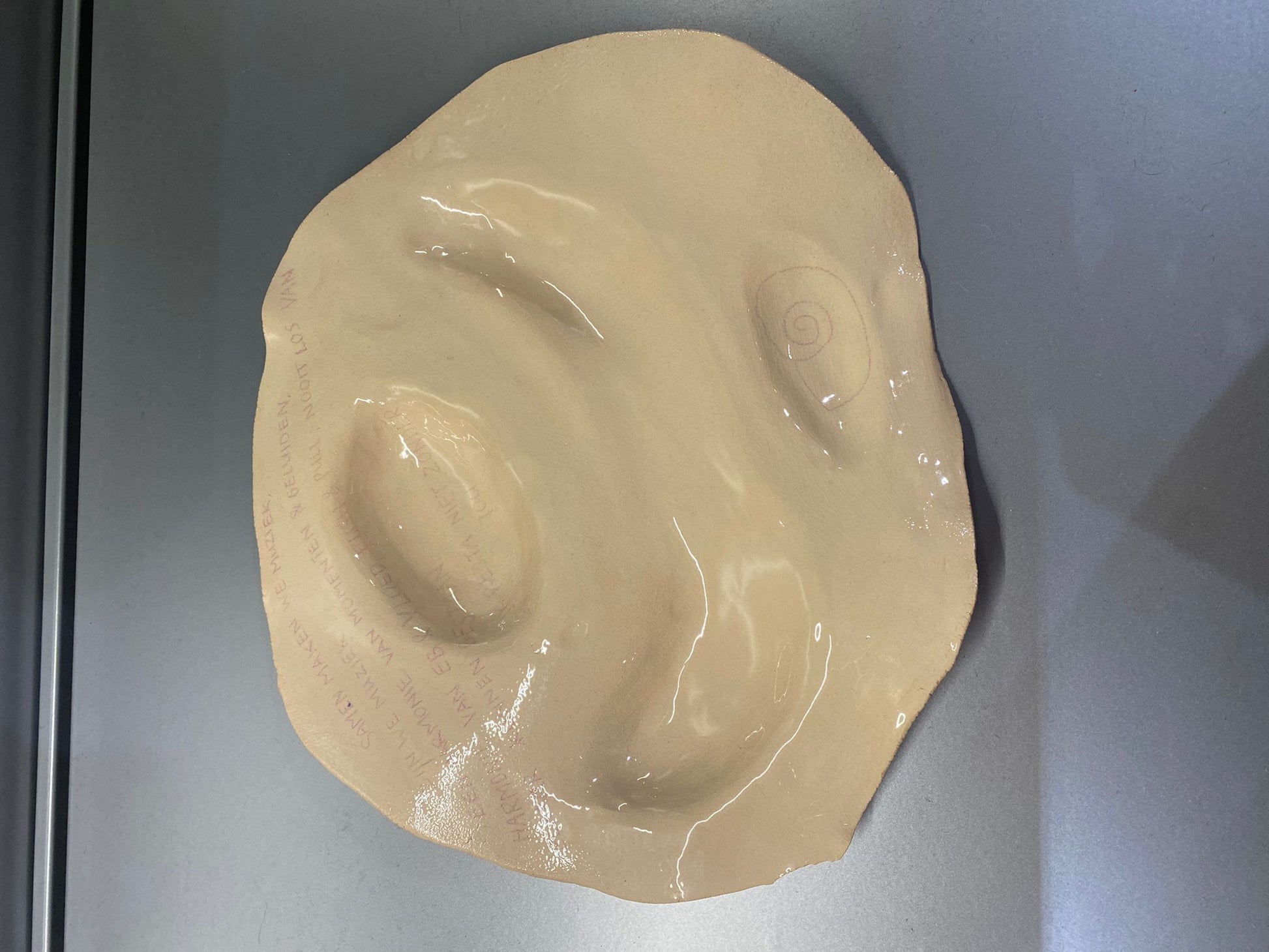 This plate was originally part of a happening called The Lovers (2024) which consisted of video (projections), instant photography, a performance where the artist cooked live in the space and 35 ceramic plates with written texts on them. The Lovers was an installation highlighting the many forms of love humans can experience outside of the well-known romantic/sexual love which we generally put on a pedestal. ((the plate is not food safe))