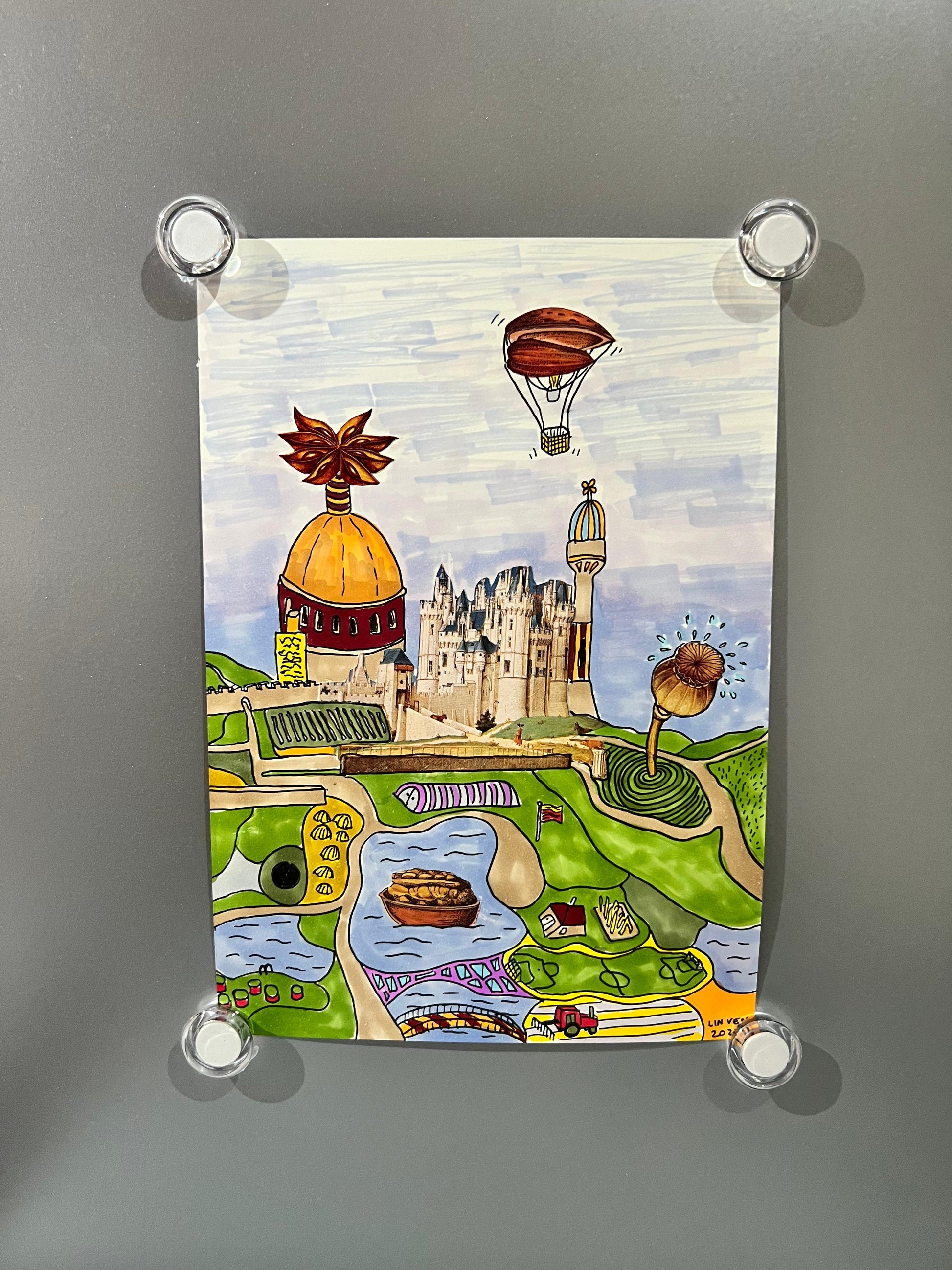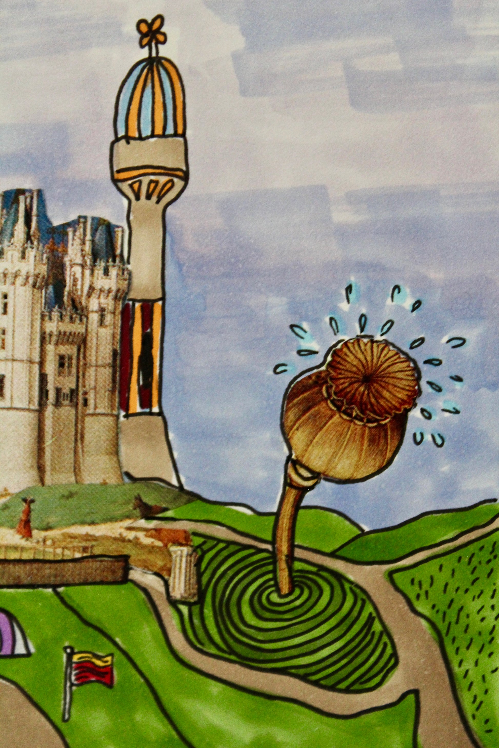 Drawing-collage with material from the encyclopedia 'Dit is je wereld - een verkenning van alles wat we weten' from 1976 original titel: The Joy of Knowledge.
