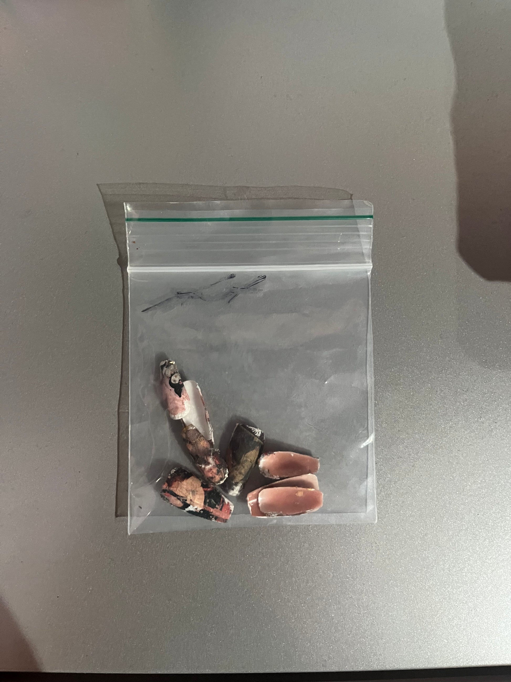 Acrylic press on nails from Etos with images of the artist Anahit Yakubovich working as a Super Welcome Host at Sexyland, as well as photos from the exhibiton she curated at Sexyland called "I am overhwhelmed by images." Plastic bag signed by Anahit.