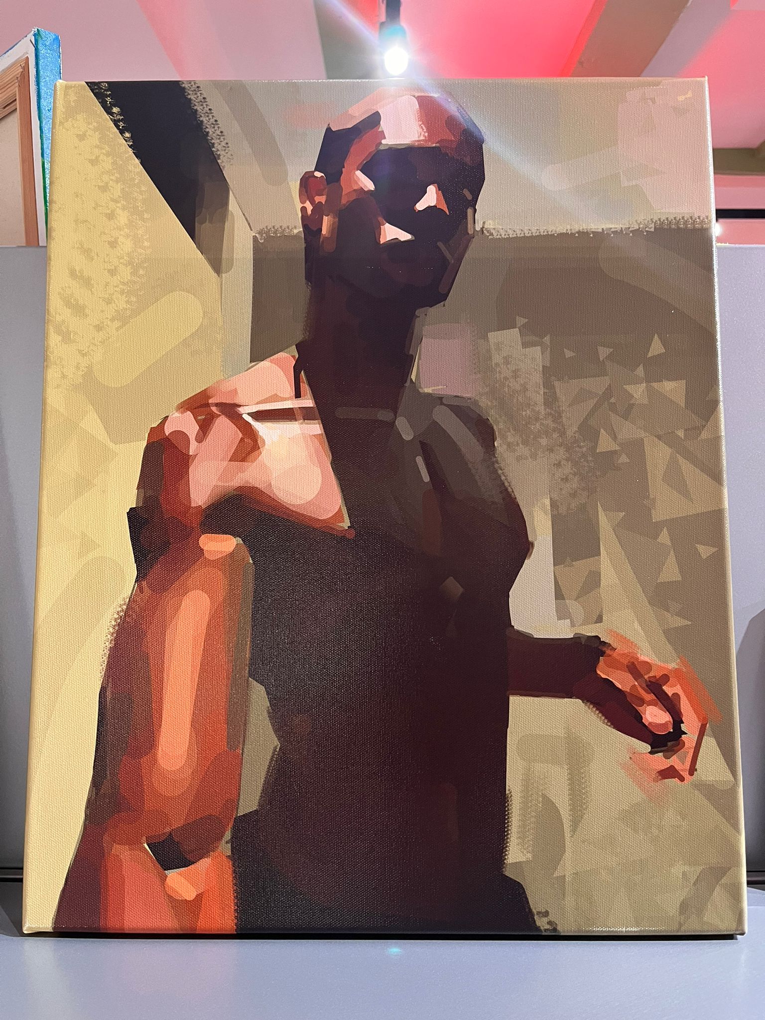 This piece is part of a series about self-appreciation, showing the artist's physical and artistic growth.