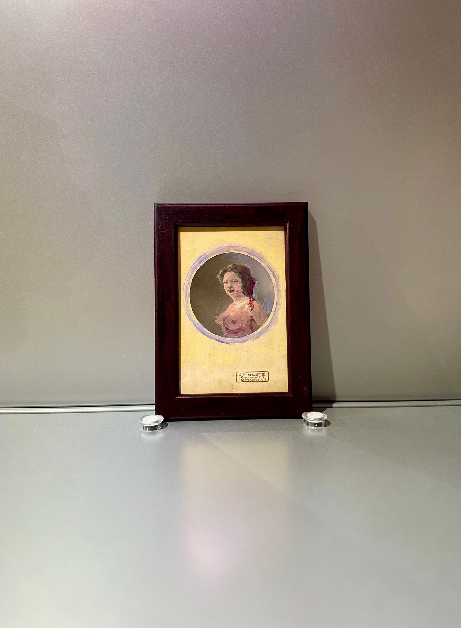 Een overgeschilderde foto van mevrouw Nieuwenhuys. Acryl op foto.