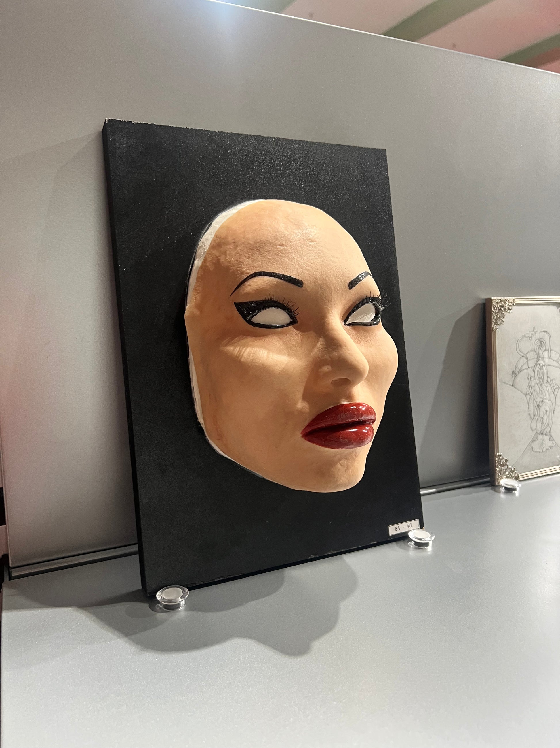 It’s part of a series of face masks modeled after the artist face. This particular one modified and enhanced. It’s a sculpture and wearable piece.