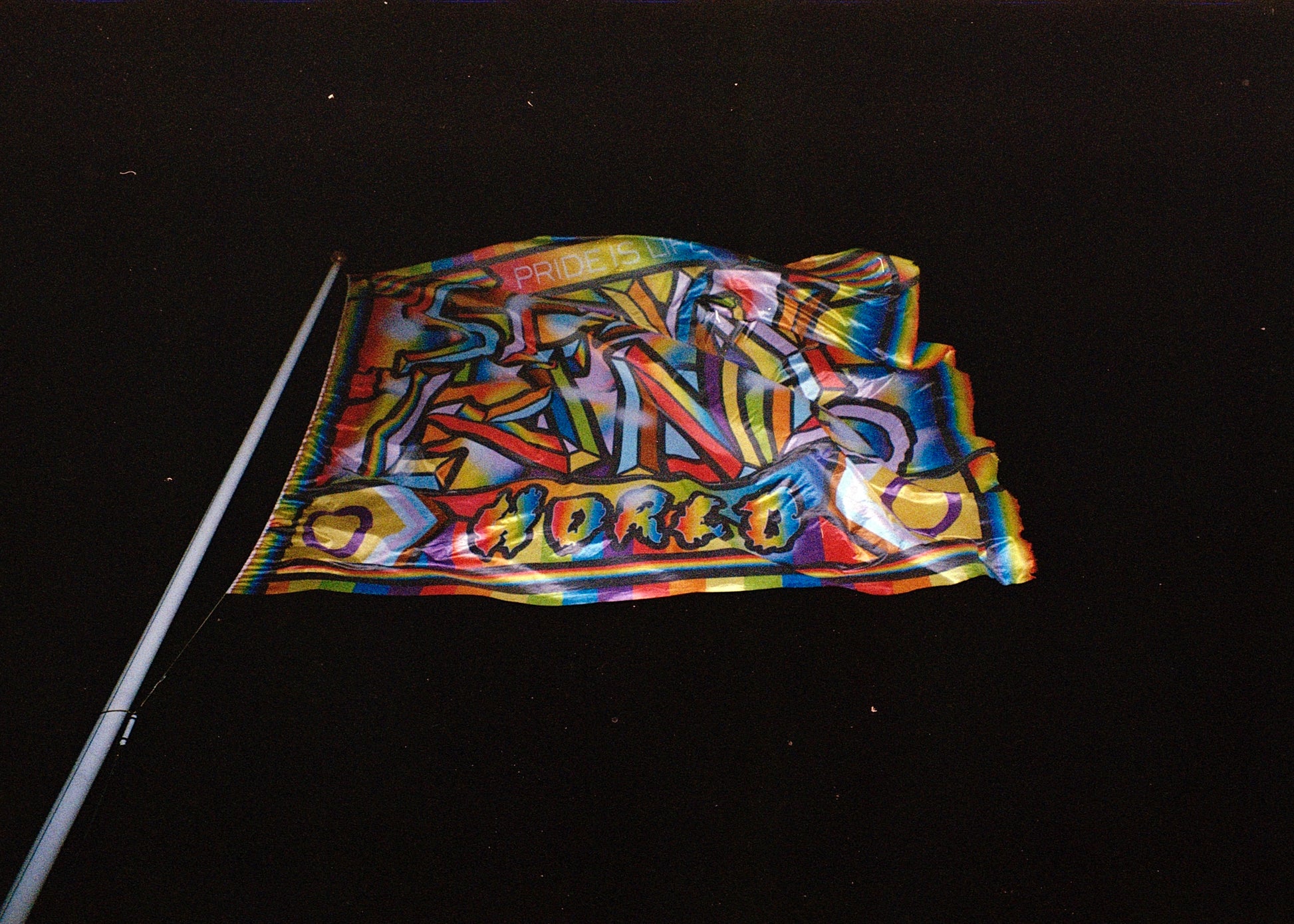 Niet enkel tijdens de queer pride, maar gewoon elke dag! Ontworpen door Paul Du Bois-Reymond voor de SEXYLAND manifestatie op het homomonument in 2024.